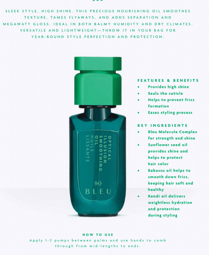 4. Smoothing: Tame frizz and achieve sleek, polished locks with R+Co Bleu’s smoothing products. Formulated to control unruly hair and smooth out rough texture, these products leave your hair silky-smooth and effortlessly manageable.