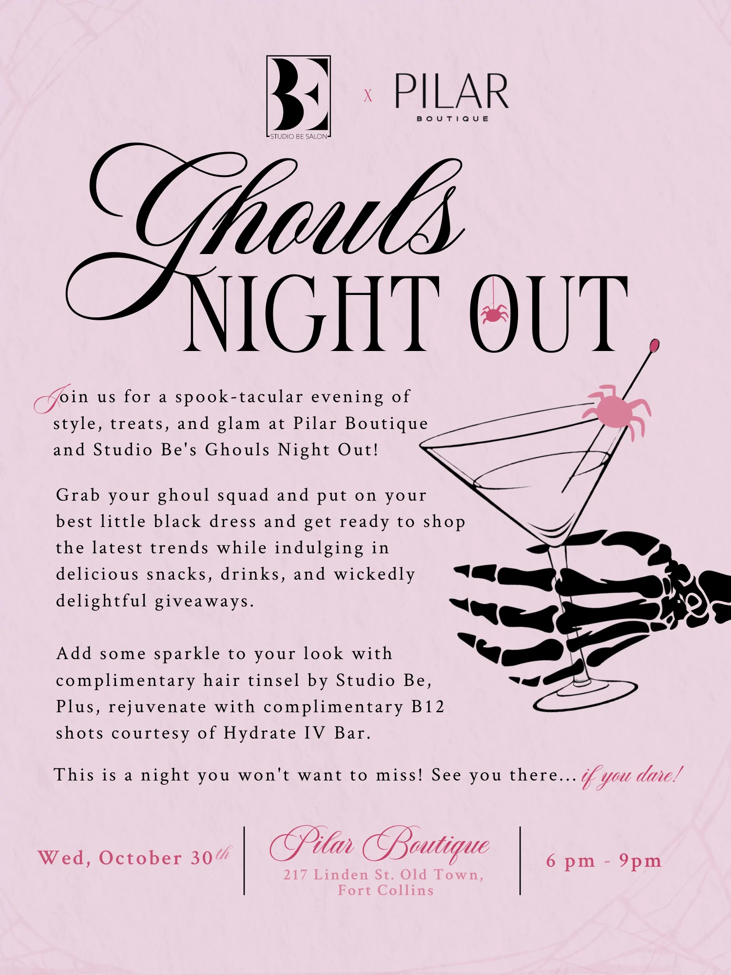 RSVP HERE Ghouls Night Out: A Glamorous Evening of Fashion, Beauty, and Charity with Studio Be Salon & Pilar Boutique Calling all fashion-forward ghouls! Mark your calendars for a night…